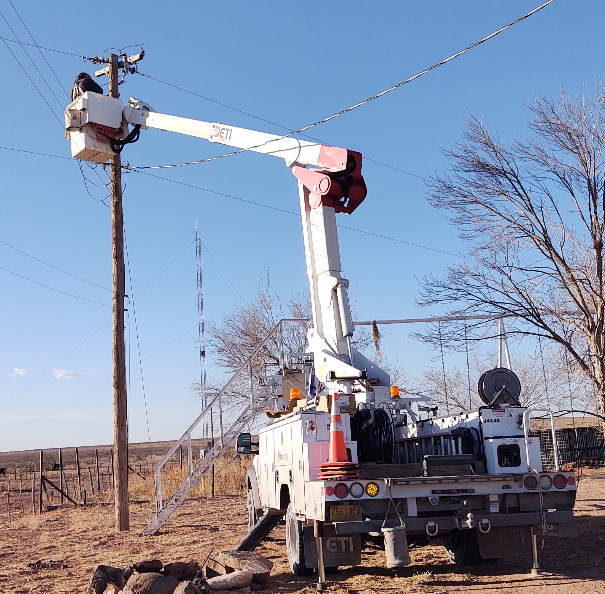 When I got up at 2:30 Thursday morning I noticed sparks and an odd glow outside the bedroom window, above the transformer east of the house. DH called the co-op and they came out at 8. Apparently the cut out (fuse holder) had been fried. He performed a temporary fix and said they'd be back out with a permanent fix and a bigger truck in a day or two.