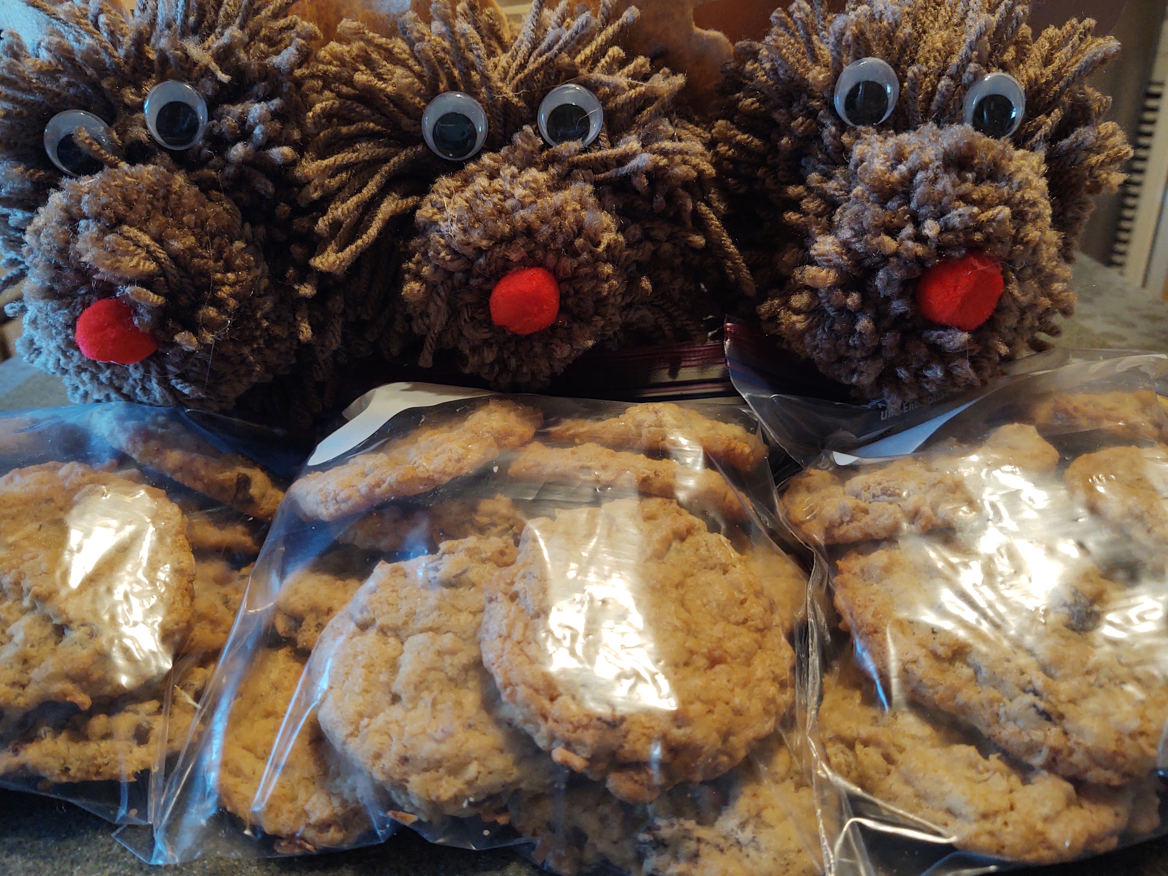 I made cookies that morning for the buyer, who is a friend, another friend who came to help, and our North Camp man and I added a Whopper Reindeer for each: